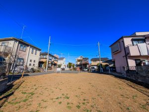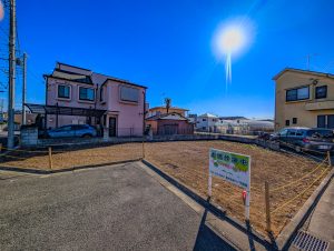 北東・北西の二方向道路に面した角地で、開放感と採光性に優れ、プランの自由度も高い整形地。南側は畑のため、将来にわたって陽当たりと抜け感が期待できます。敷地面積は約47.54坪とゆとりがあり、4LDK+駐車スペースなど、理想の住まいを無理なく実現可能です。